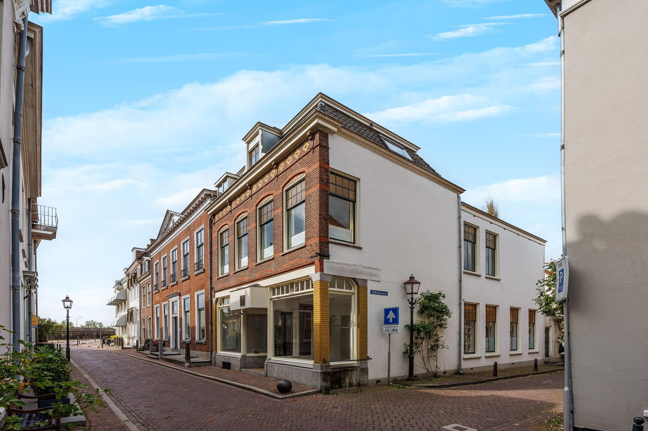 Deze bijzonder geornamenteerde woning heeft nog vele originele details van de bouwperiode uit begin 20e eeuw, zoals bijvoorbeeld een voorpui met een natuurstenen plint en fraaie, in facet geslepen, bovenlichten. De verdieping is uitgevoerd met 4 schuifvensters met versierde boogvelden. Het fraai afgeknotte schilddak is uitgevoerd met twee dakkapellen. Via een aparte ingang (administratieve splitsing) krijgt u via de Wilhelminastraat toegang tot de woning. Via de mooi aangelegde binnentuin met vrijstaande stenen berging komt u binnen via de woonkeuken.