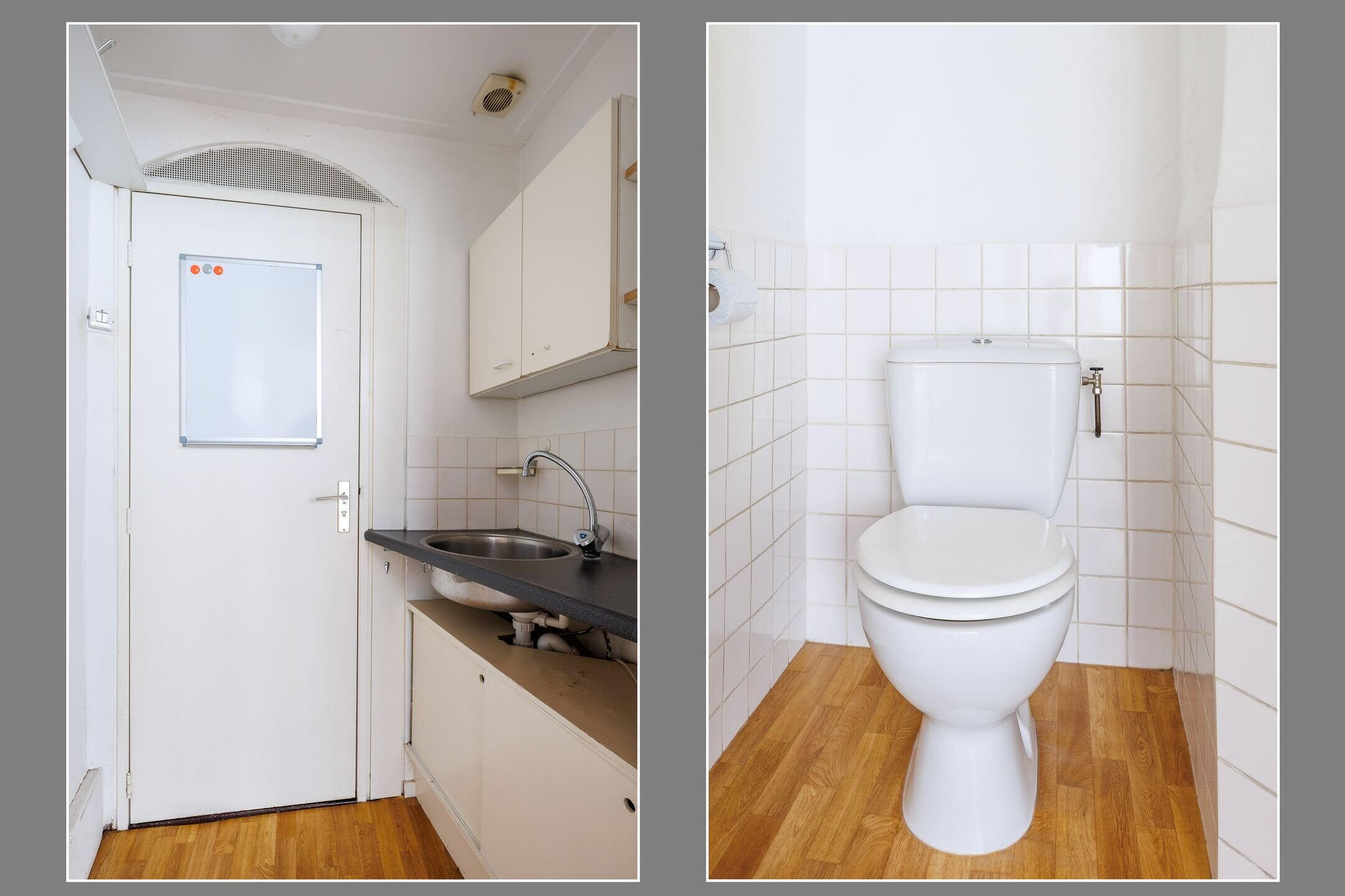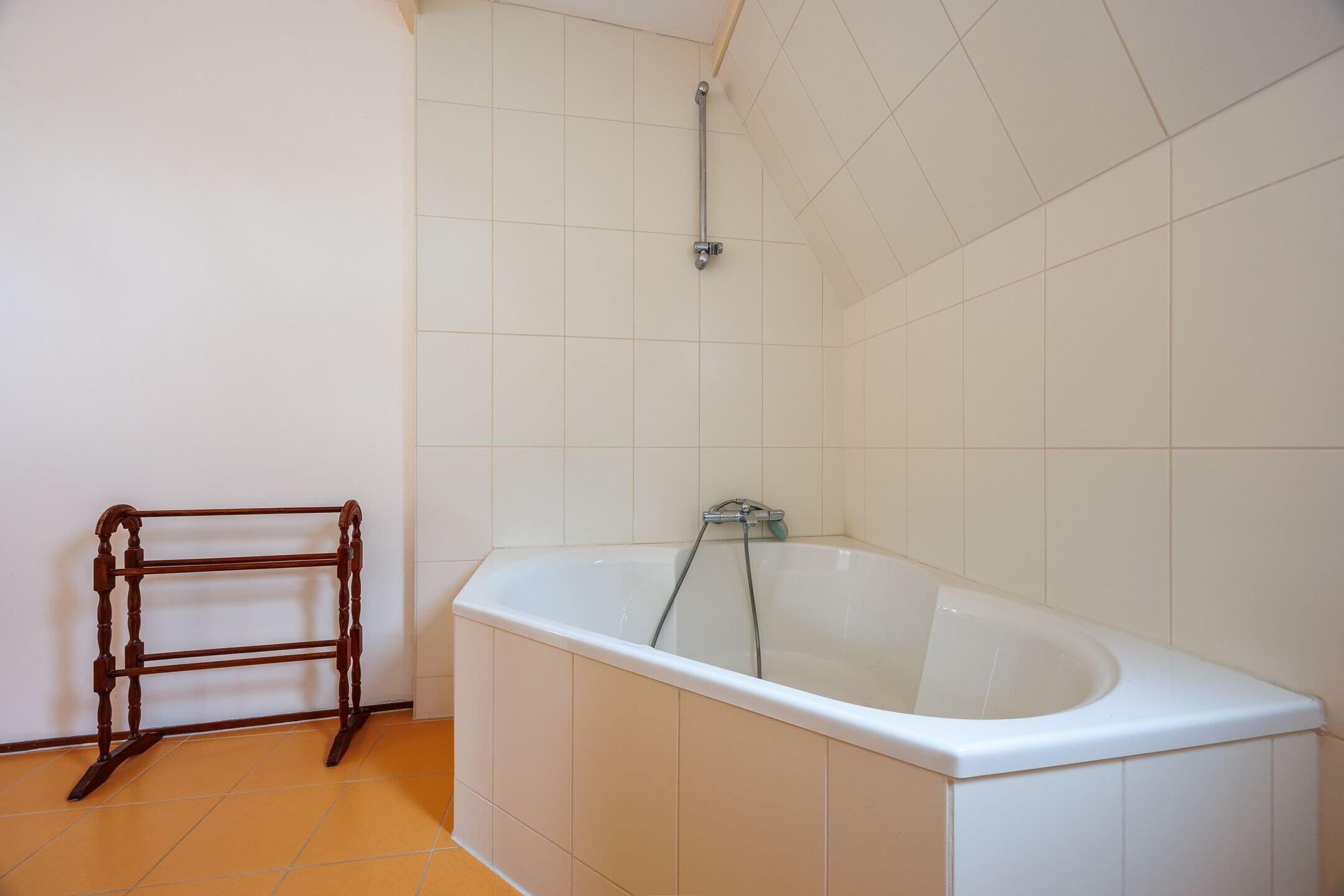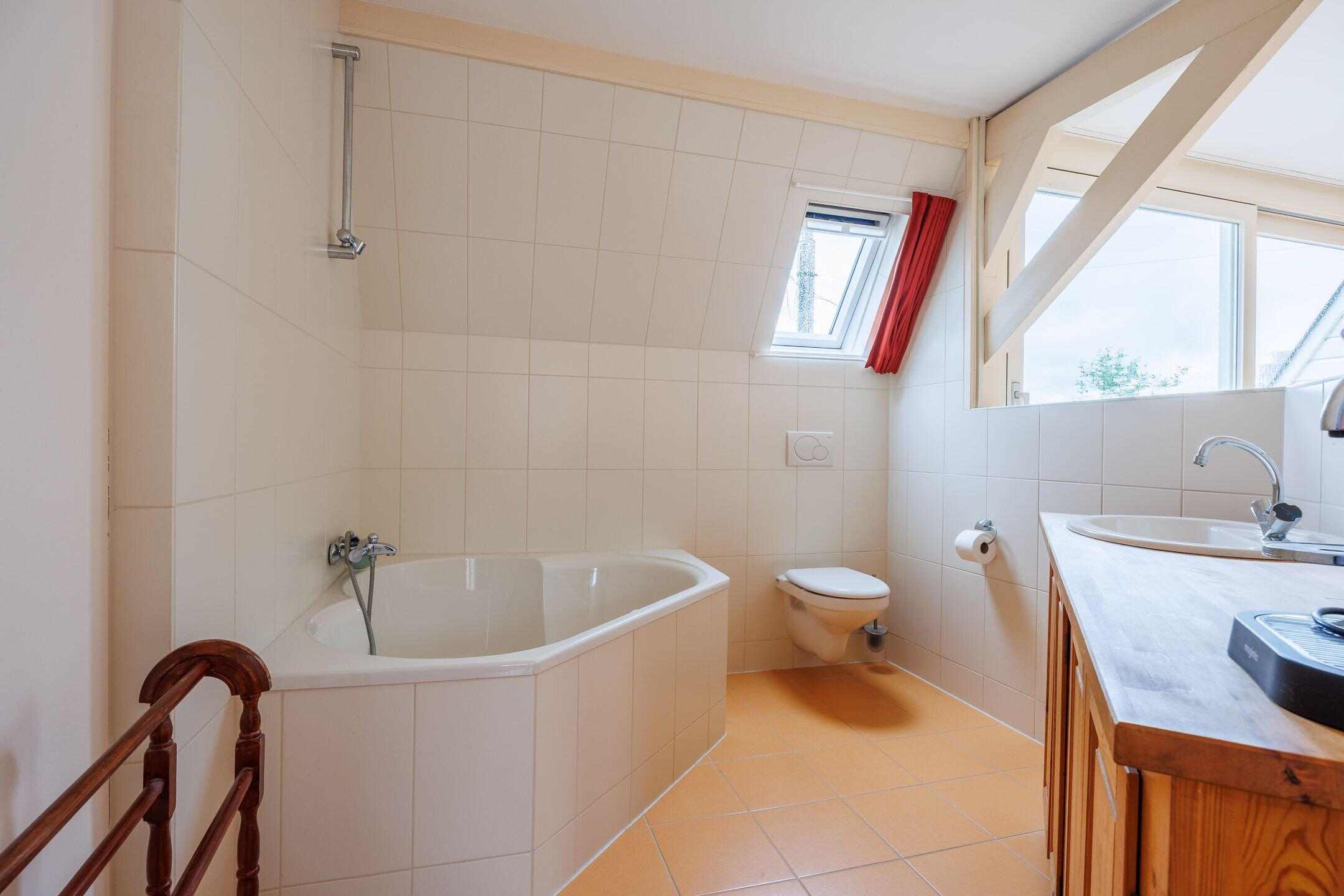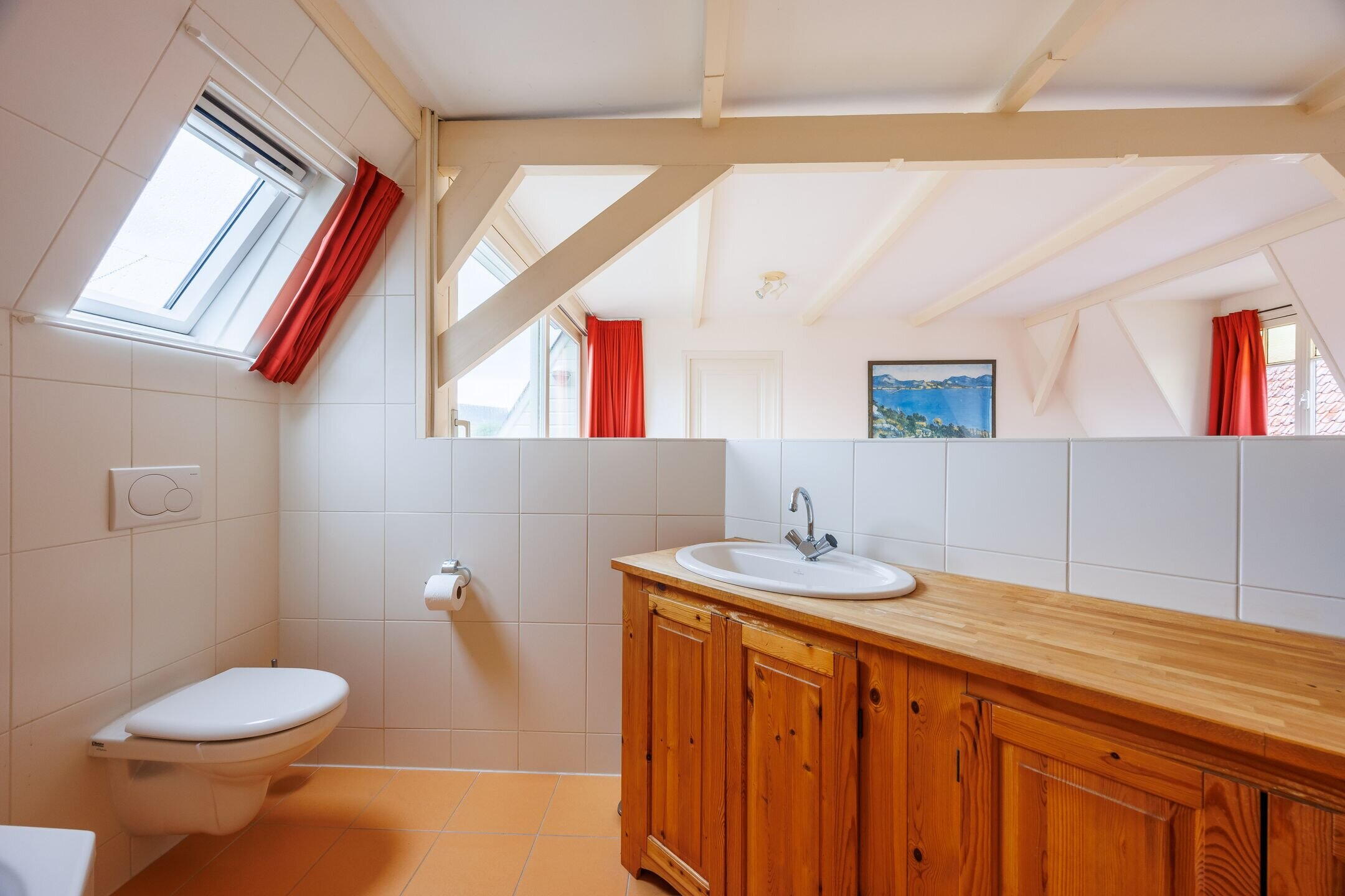 De volledig betegelde badkamer is voorzien van vloerverwarming, een douchecabine, wastafel, 2e toilet en een handdoekradiator. Door het grote raam in de badkamer komt er veel licht binnen en kan de badkamer goed geventileerd worden.