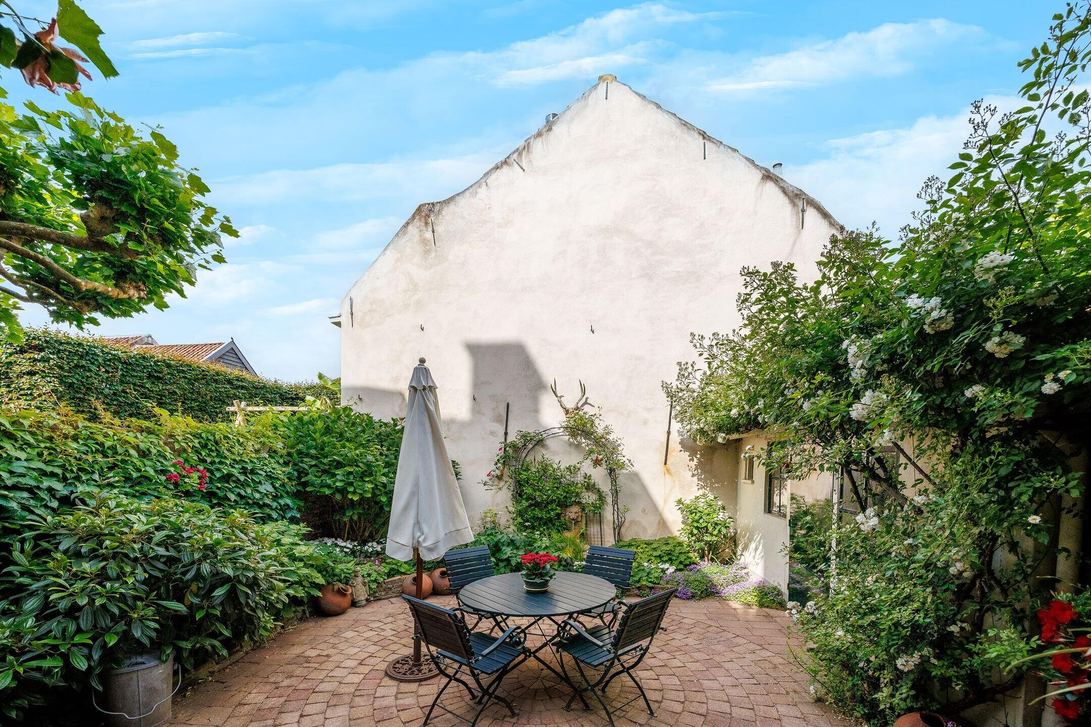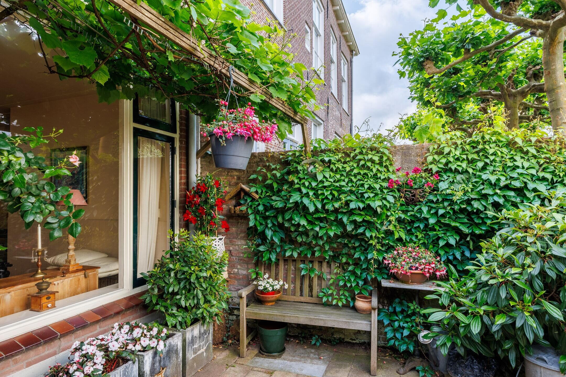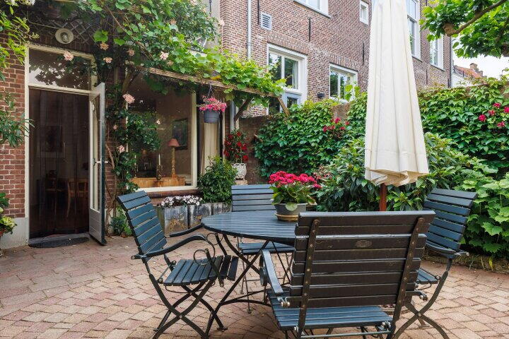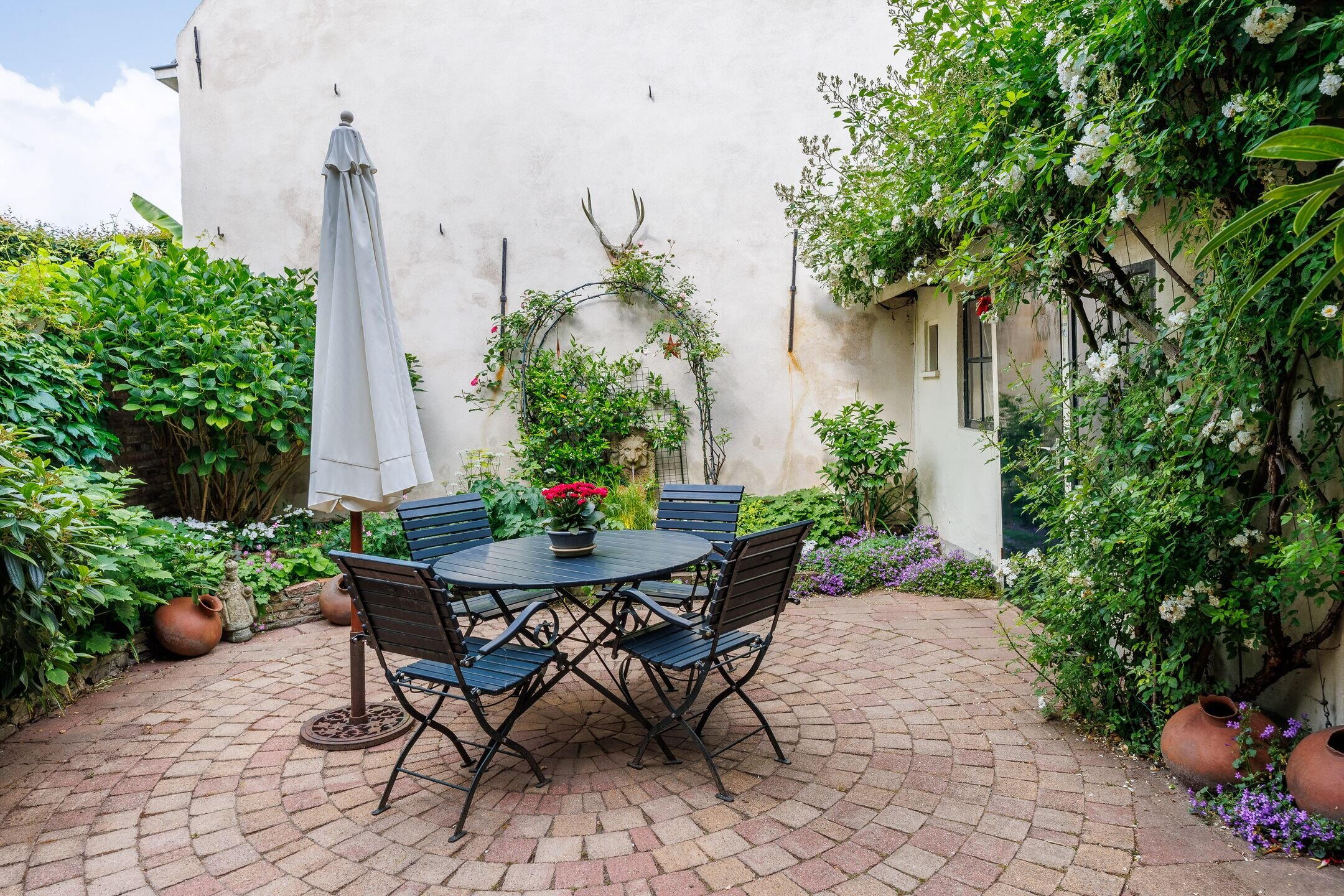 Sfeervolle binnentuin op het westen met historische details;