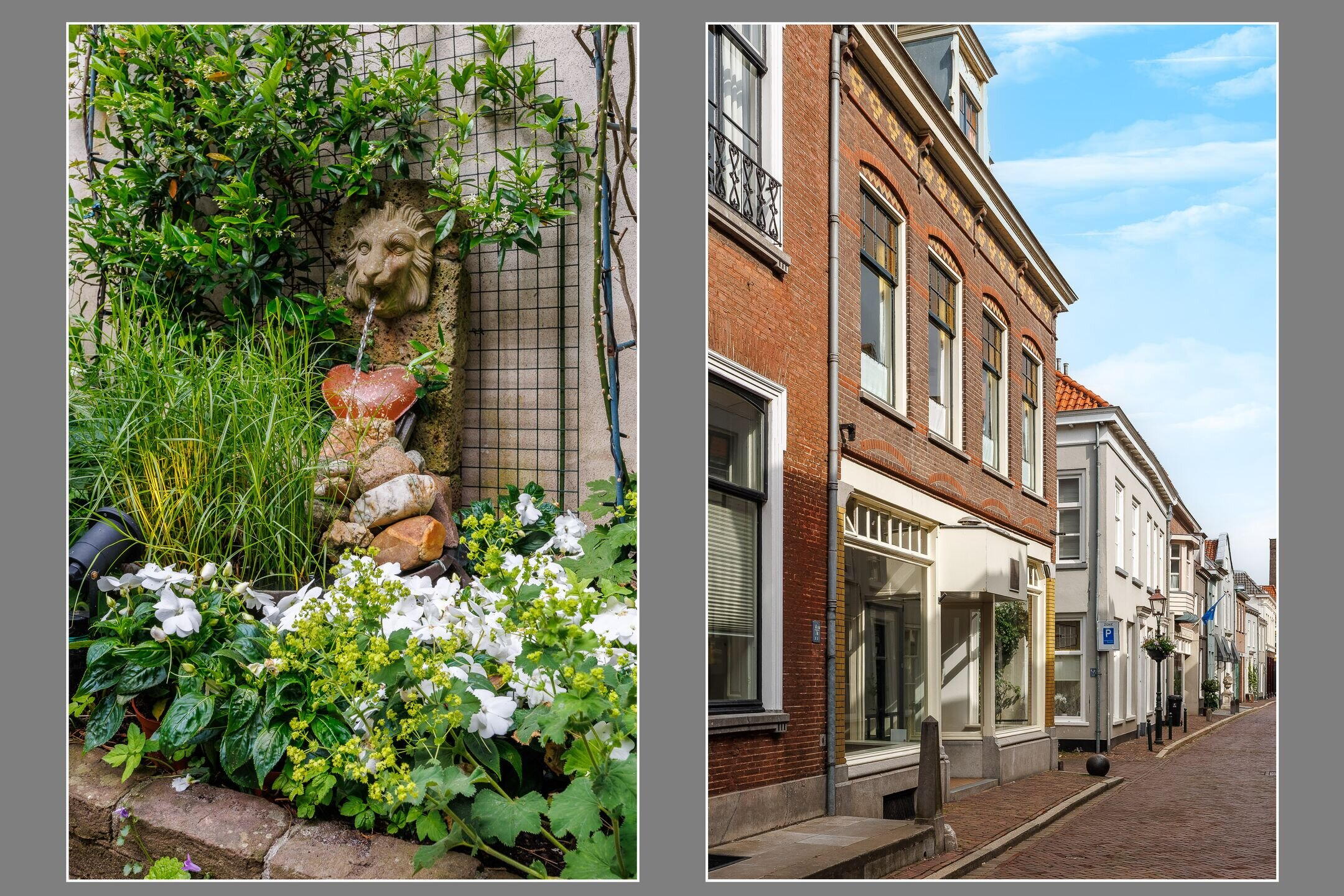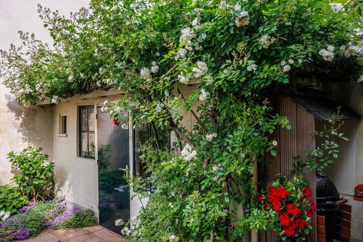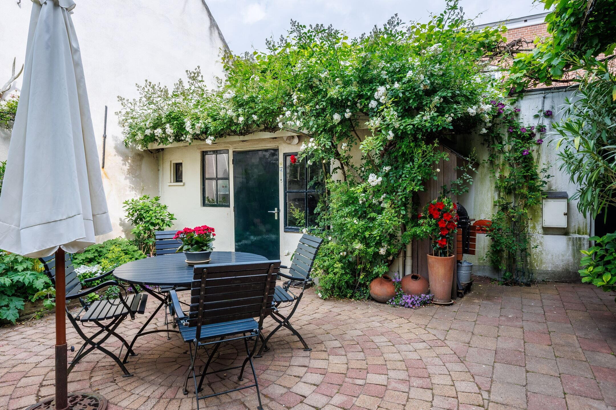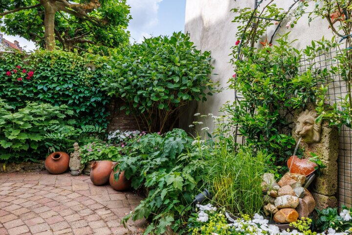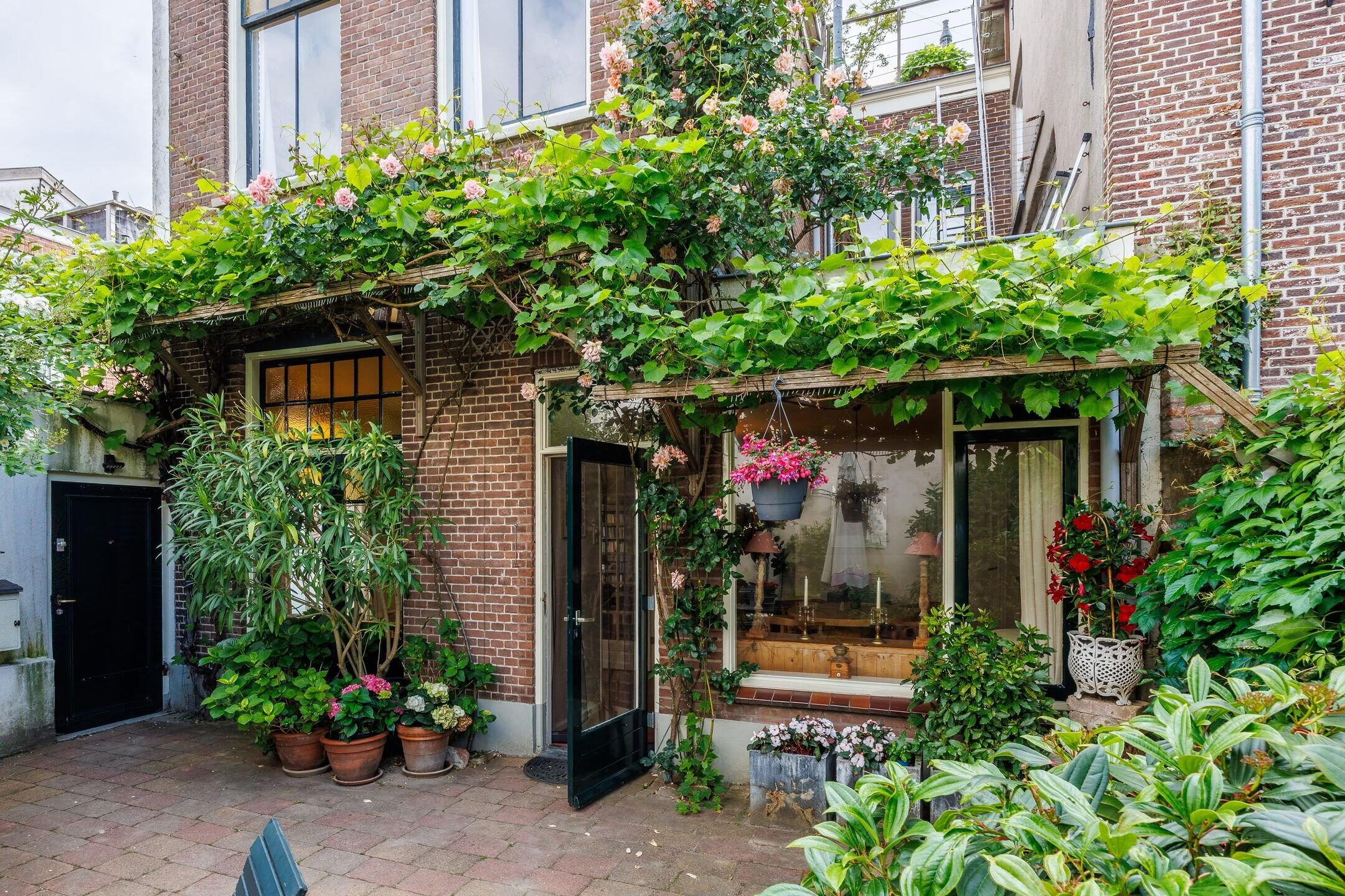 Sfeervolle binnentuin op het westen met historische details;