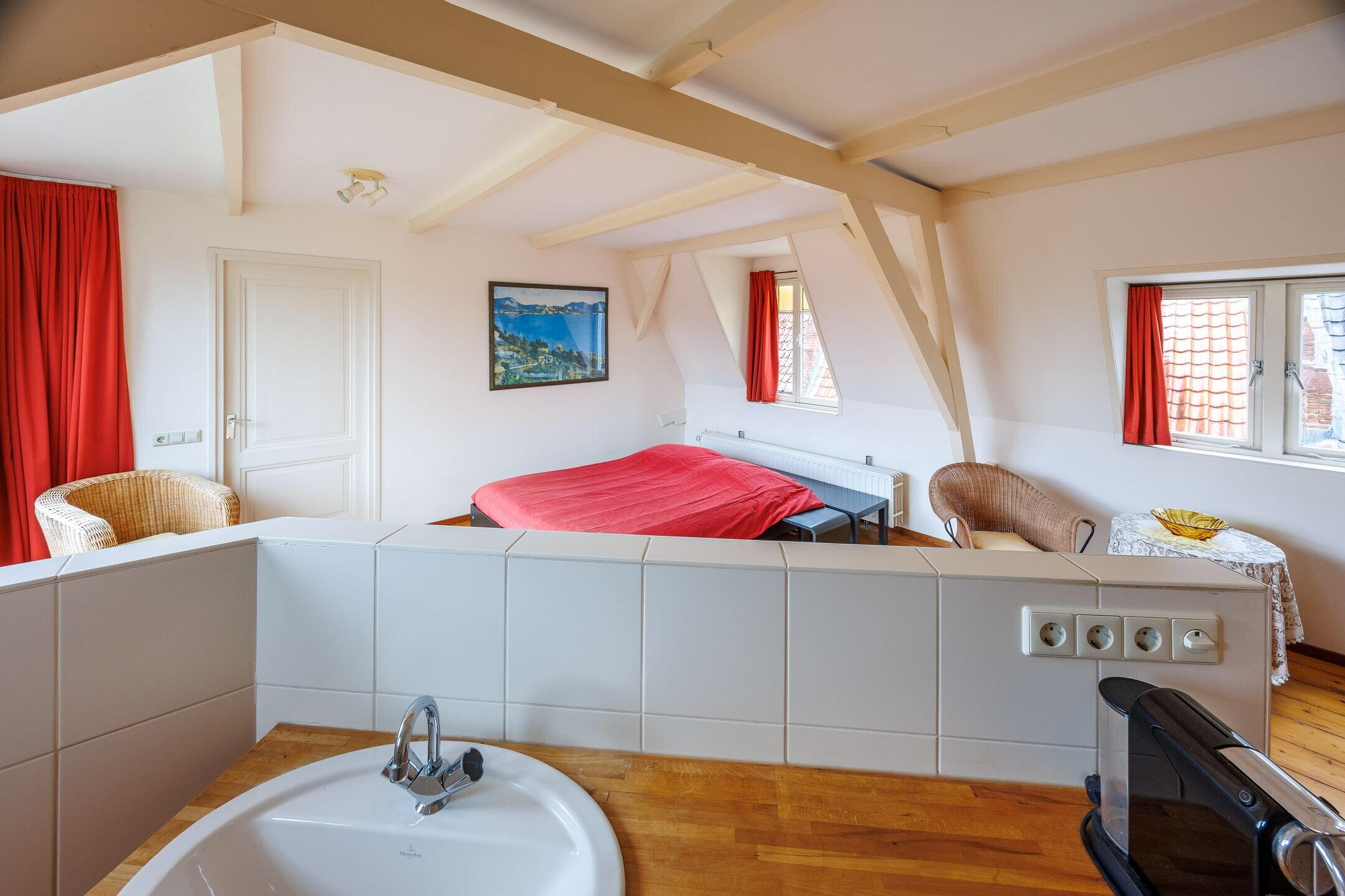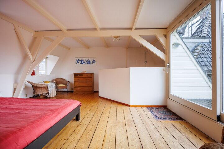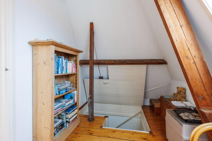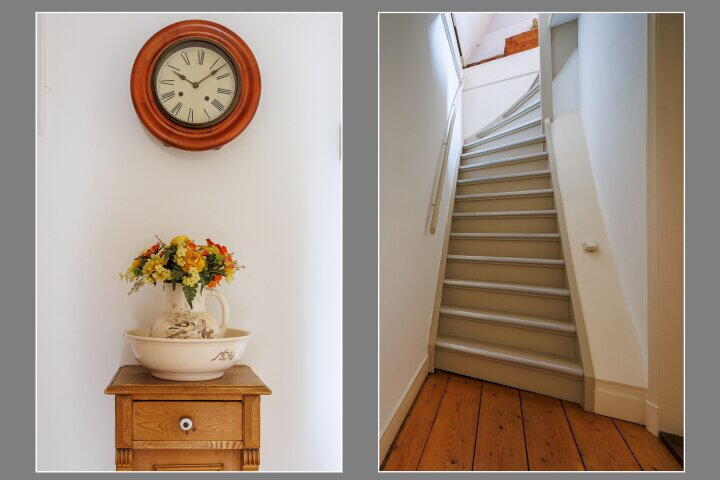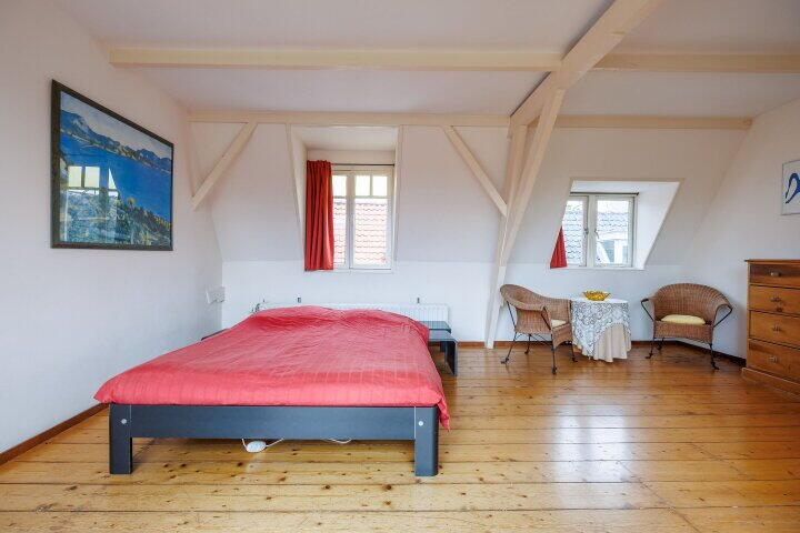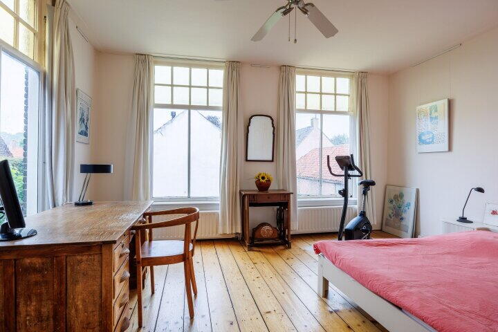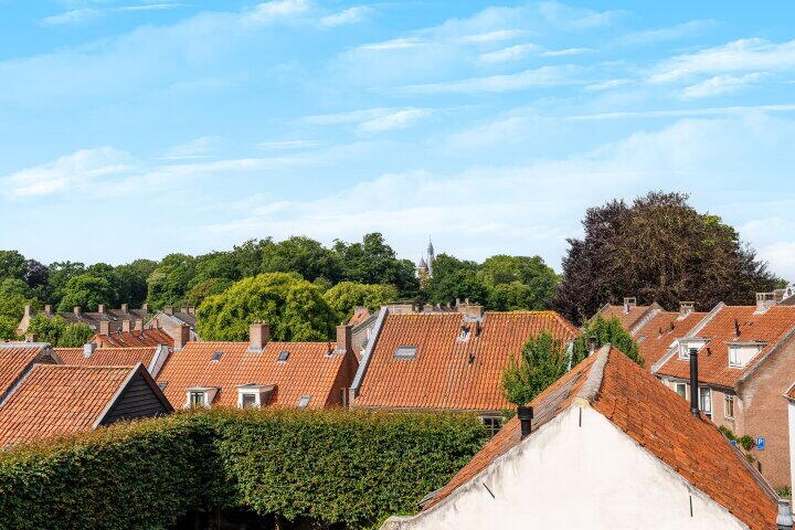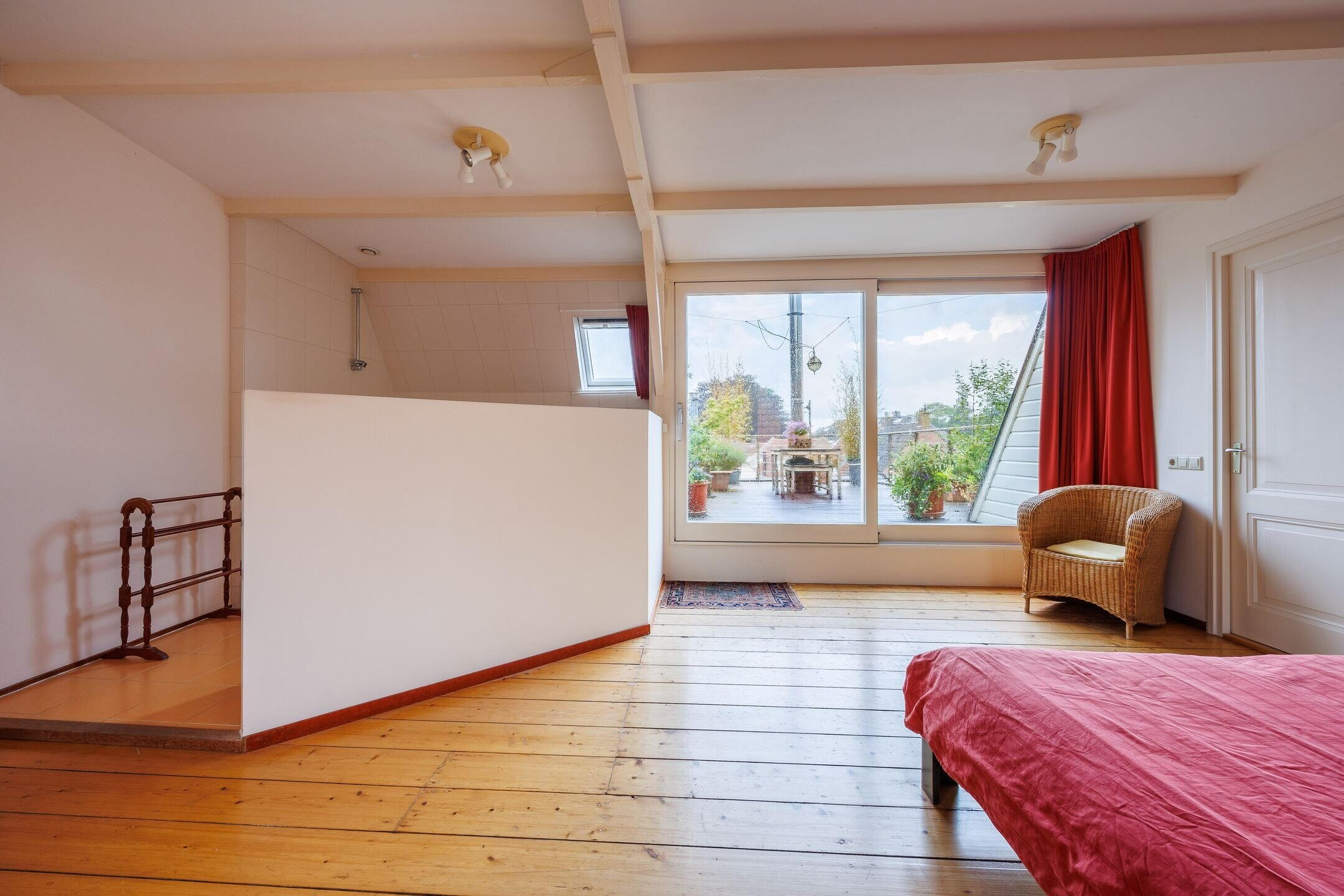 Via de vaste trap komt u op de tweede verdieping met een overloop en met een garderobe inloopkast. Hier heeft u tevens toegang tot de fraaie slaapkamer/studio met badkamer ensuite (uitgevoerd met bad/douche, wastafelmeubel en een 3e toilet), twee dakkapellen en een schuifpui met entree naar het fraaie dakterras. Via de schuifpui komt u op dit prachtige dakterras met uitzicht over de oude binnenstad van Wijk bij Duurstede en de Donjon van kasteel Duurstede. Door de ligging op het westen kunt u 's avonds lang genieten van de ondergaande zon en van het fraaie uitzicht. Wilt u ook wakker worden met zicht op het mooie centrum van Wijk bij Duurstede en kasteel Duurstede? Belt u dan snel voor een bezichtiging; dan vertellen wij u graag meer over deze unieke historische woning.