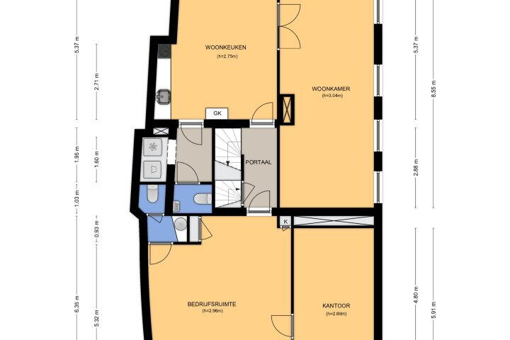 Veelzijdige indeling met mogelijkheden voor praktijk/kantoor/winkel aan huis;